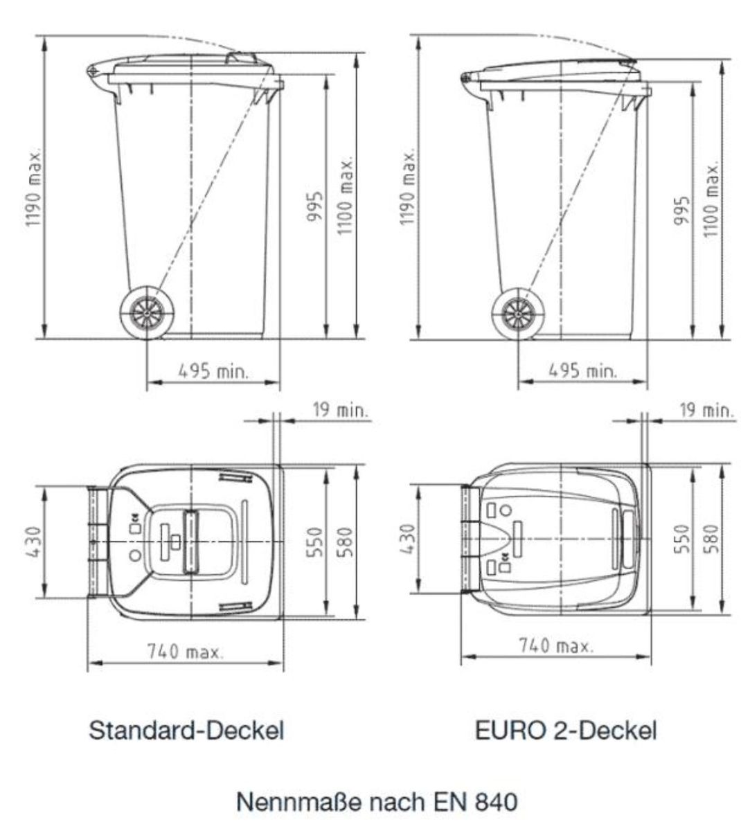 Tonnengröße: | bis 240 Liter, bis 120 Liter |
