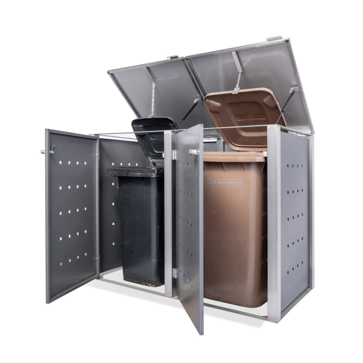 2er Mülltonnenbox Edelstahl für 120 und 240 Liter Tonnen - MultiMax